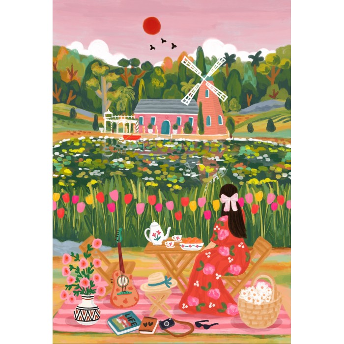 Plongez dans la sérénité d’un paysage lacustre avec ce puzzle de 1000 pièces, illustré par Nidhi Kachhadiya. Idéal pour se détendre, il transforme chaque assemblage en un moment créatif et relaxant.