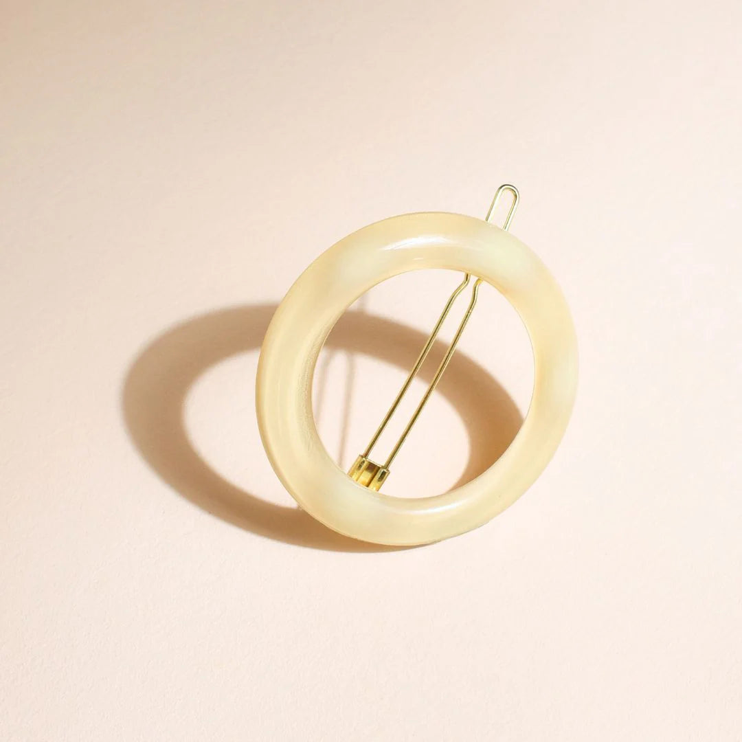 Cette barrette ronde Ivoire est l'alliée minimaliste de toutes vos coiffures chics, en un clin d'œil. 🤍