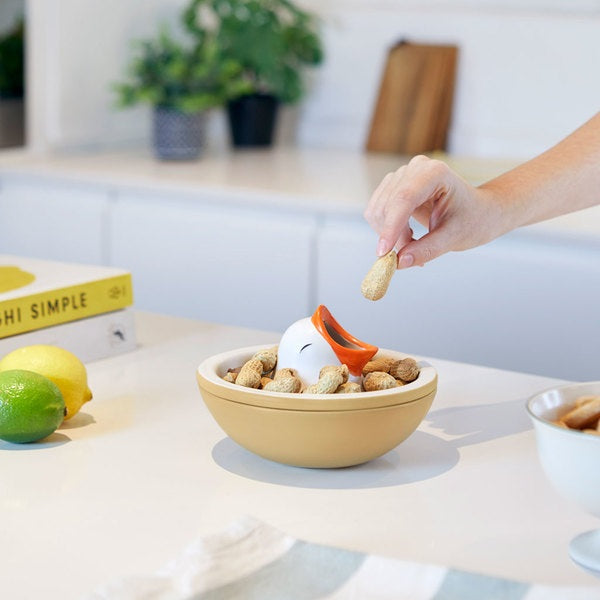 Apportez une touche ludique et pratique à vos apéritifs avec le bol Hungry Bird signé Balvi. En forme de nid avec un petit oisillon, ce bol combine design original et fonctionnalité, permettant de déguster vos snacks préférés tout en gardant votre table propre.
