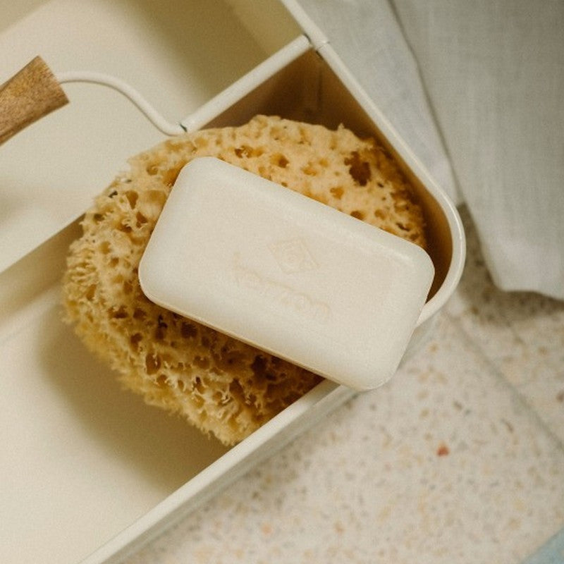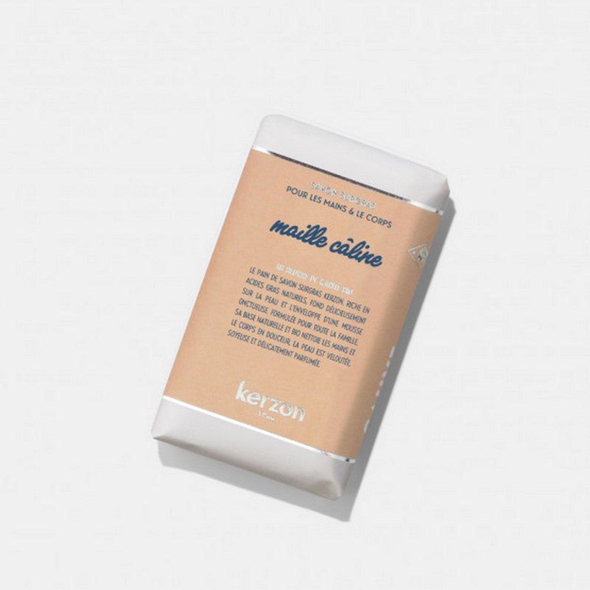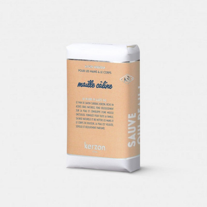 Le savon solide surgras Maille Câline de Kerzon enveloppe la peau de toute la famille d’une douceur réconfortante et d’un parfum apaisant.