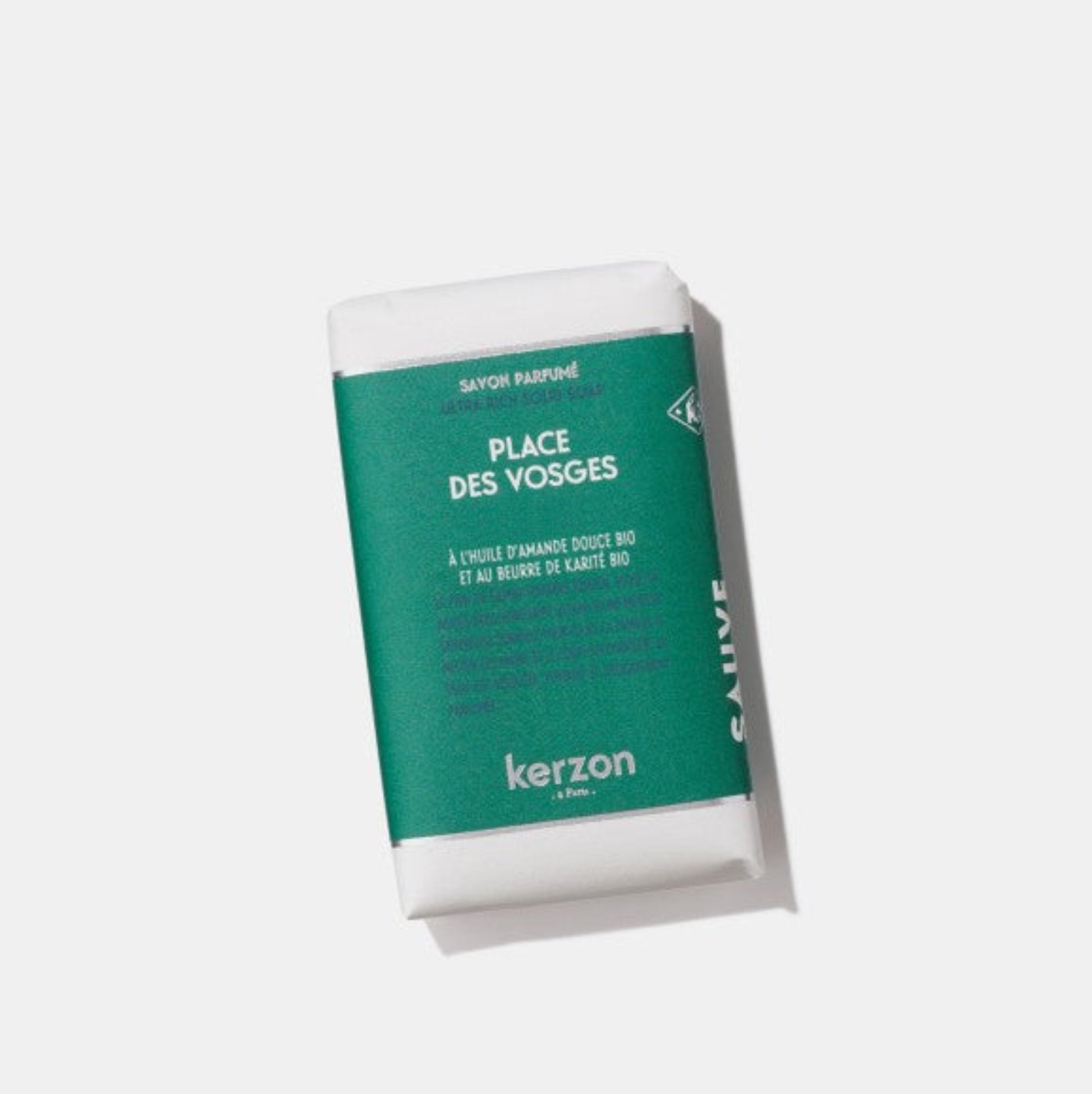 Le savon solide surgras Kerzon, riche en acides gras naturels, en beurre de karité et en huile d'amande douce bio, enveloppe la peau d’une mousse onctueuse et la parfume délicatement.